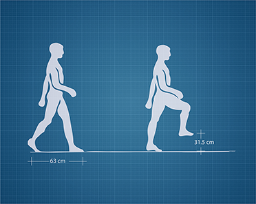 2 rise heigh (h) + 1 tread depth (T) = 60 t 64 cm (module)or 2r + h = module (m)where: h: The heigh of the step; it is between 15 and 21 cm. For most cases, 17 cm is the ideal.